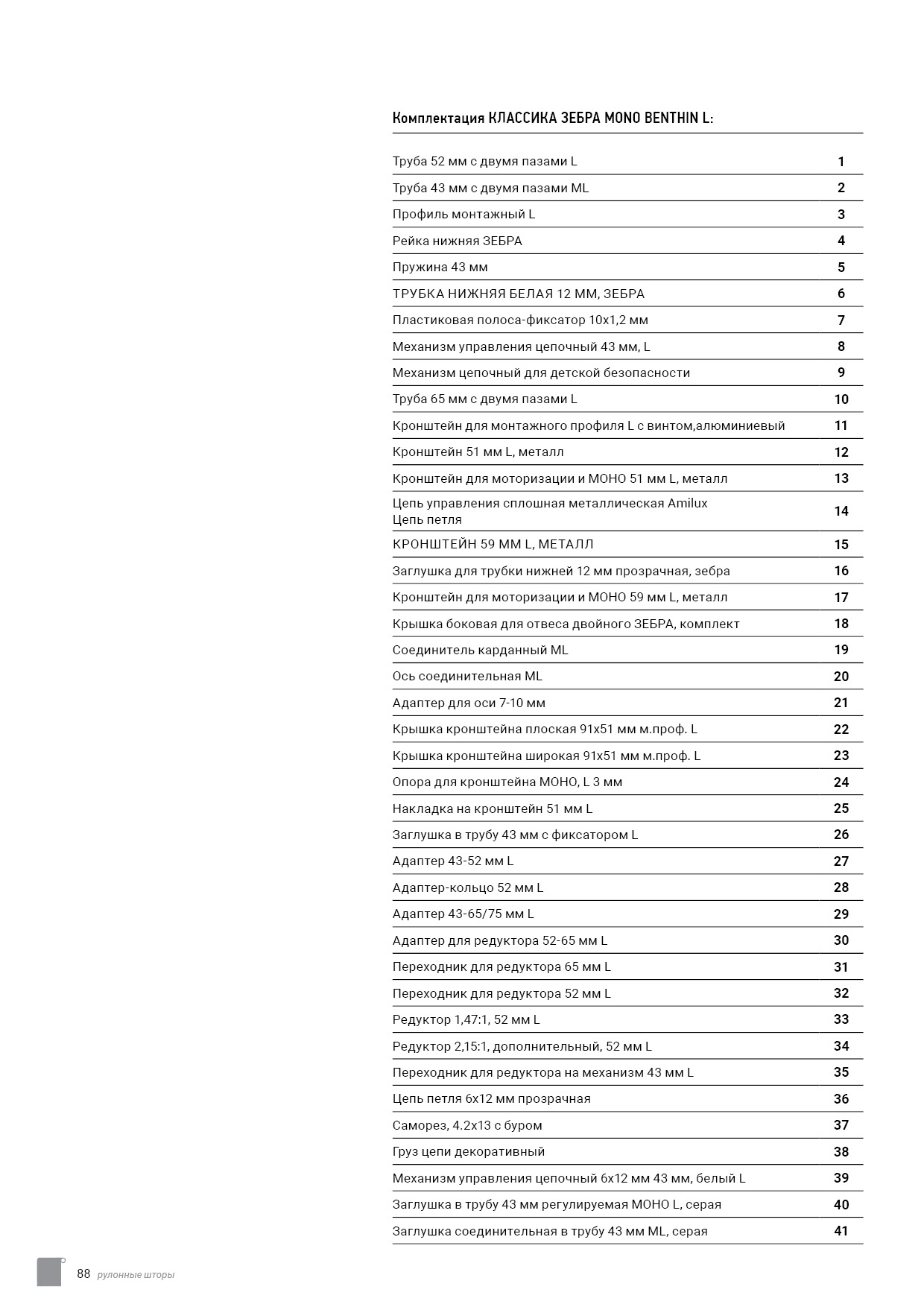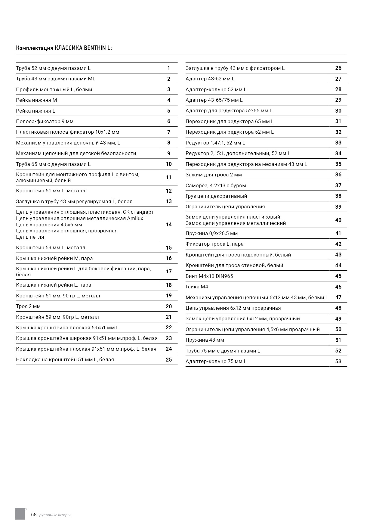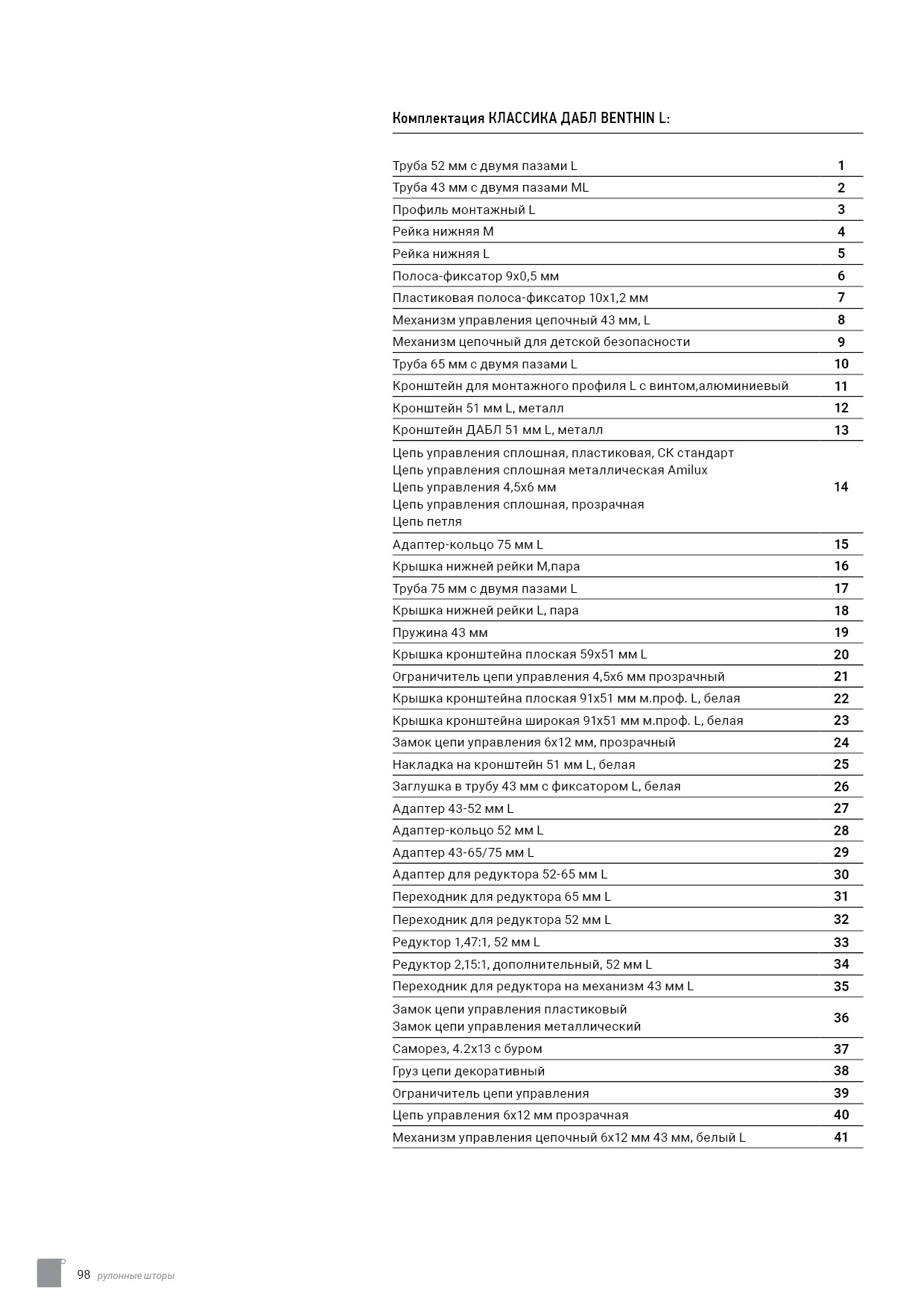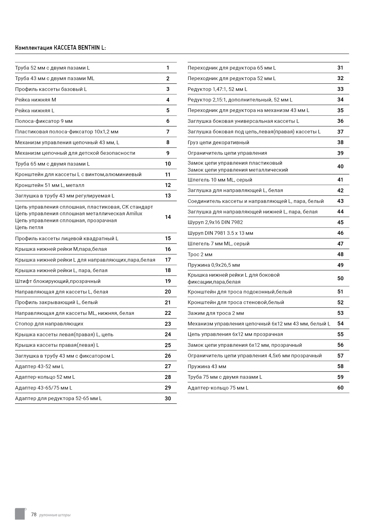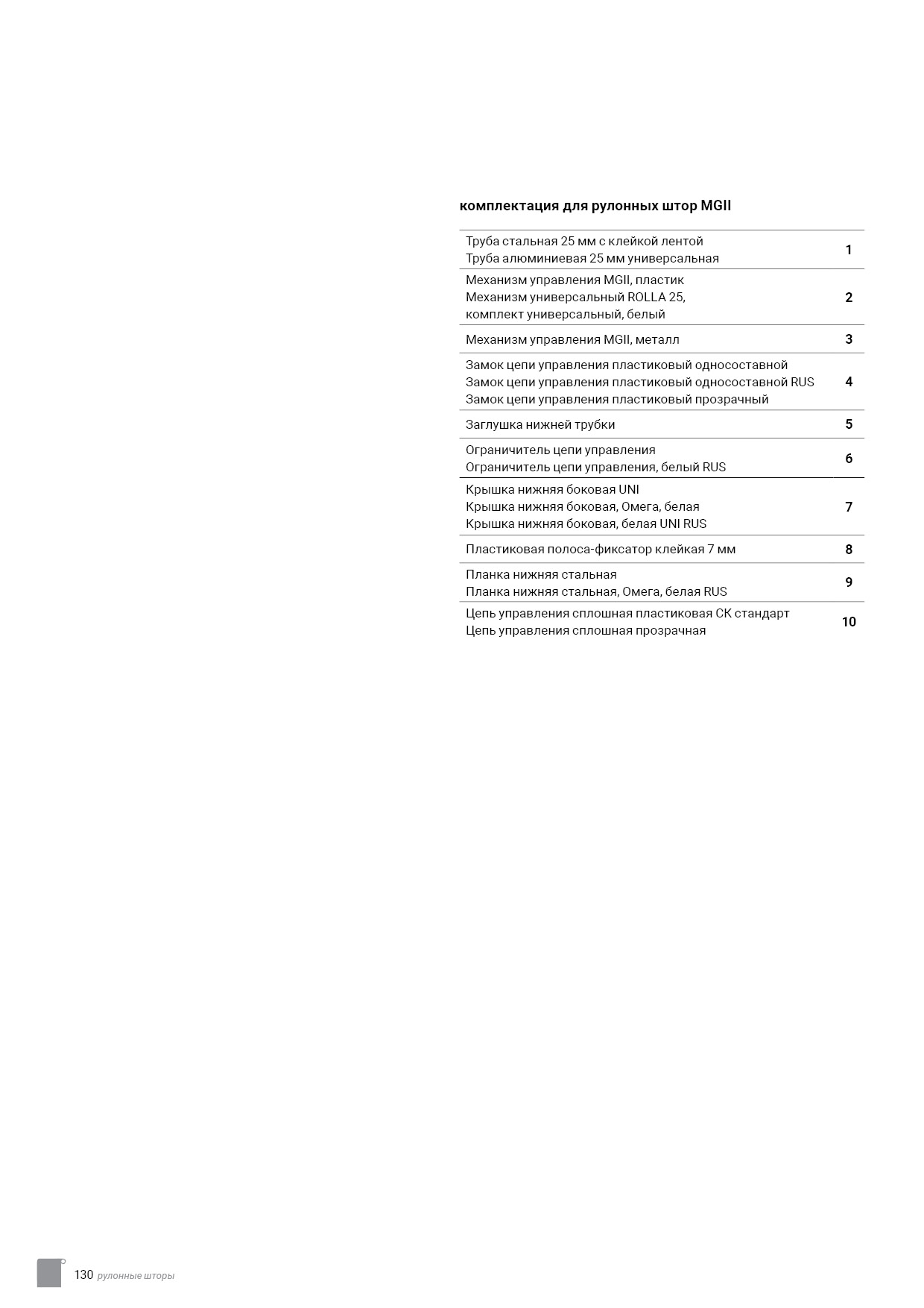 Технический каталог комплектации