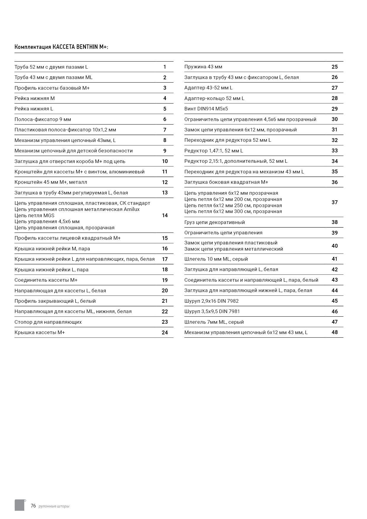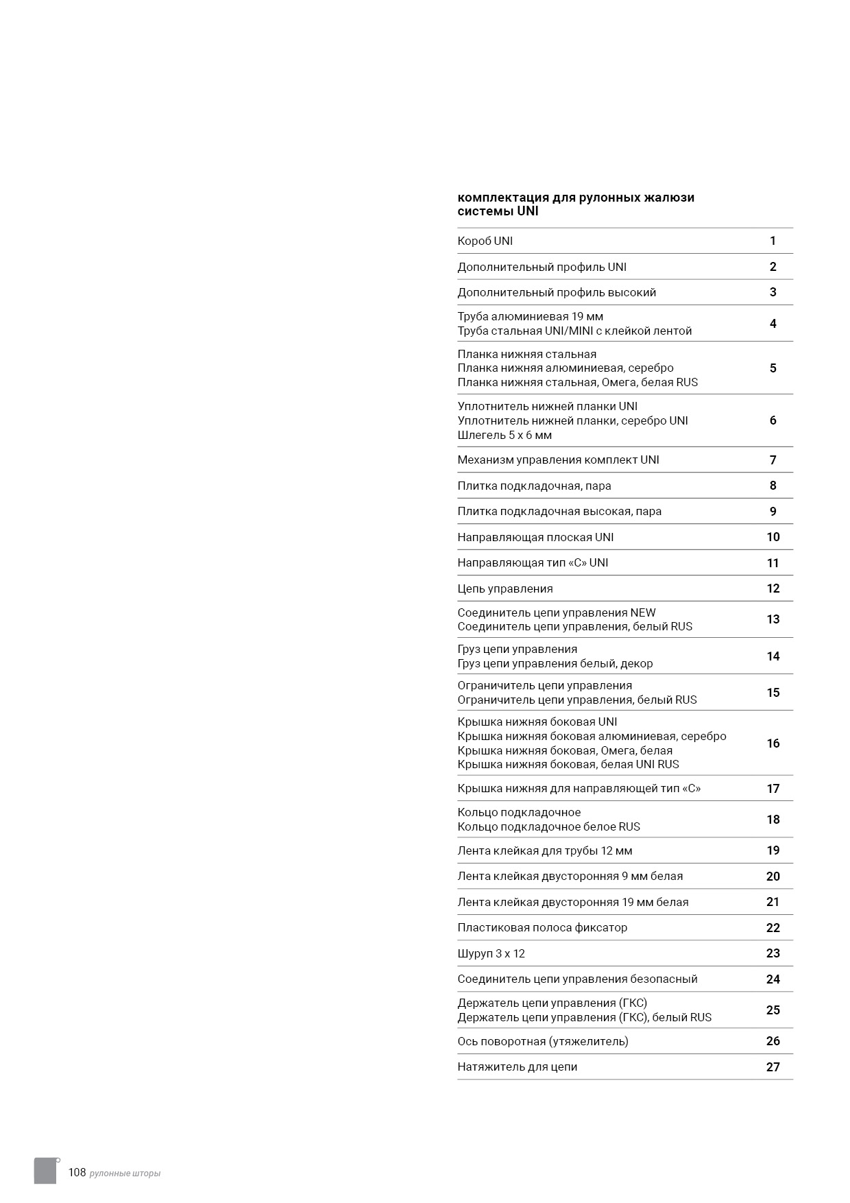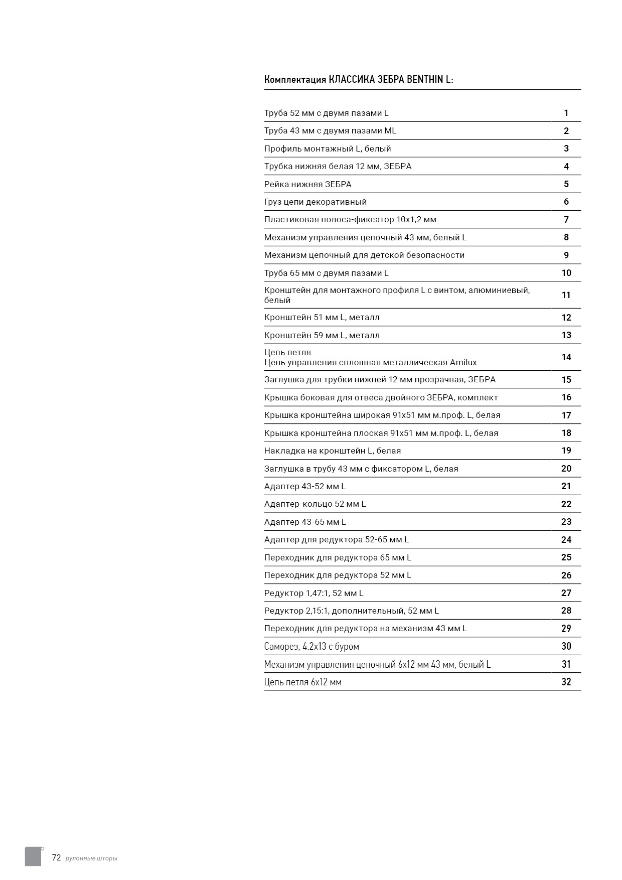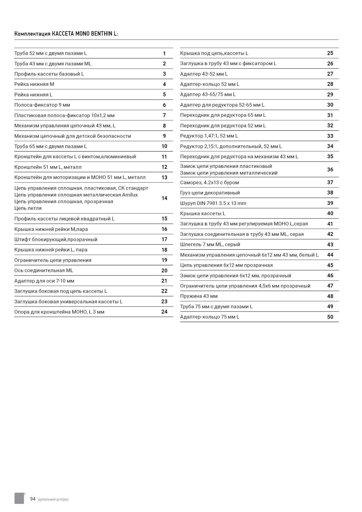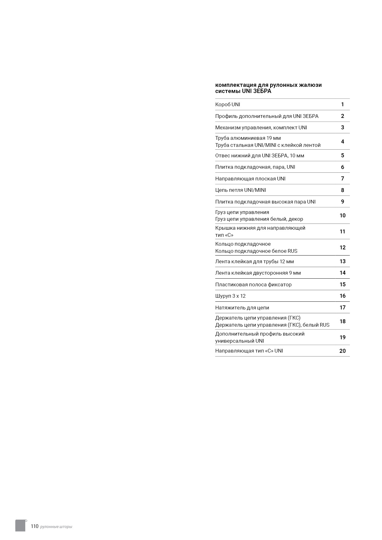 Технический каталог комплектации