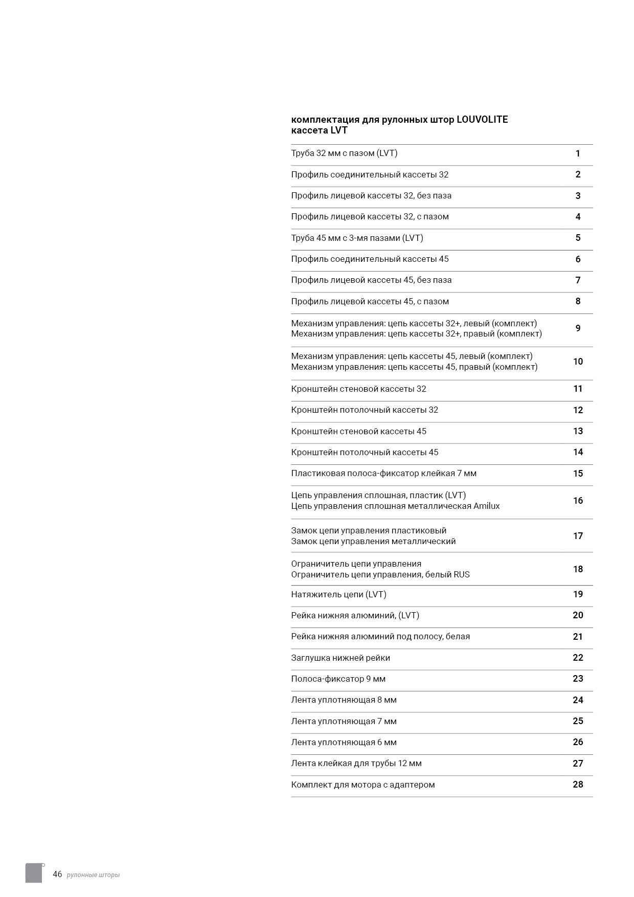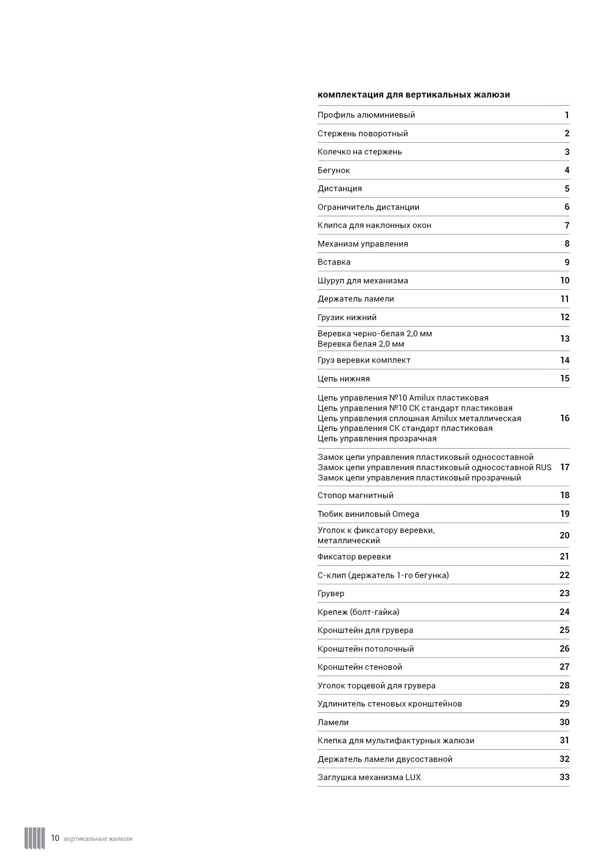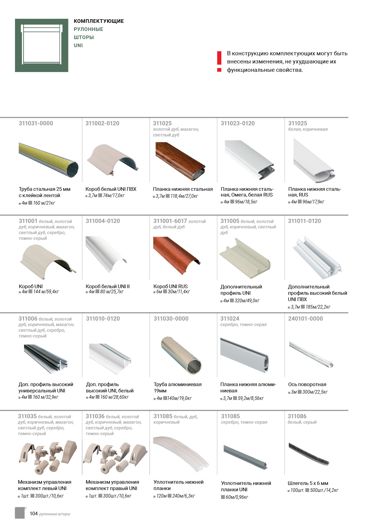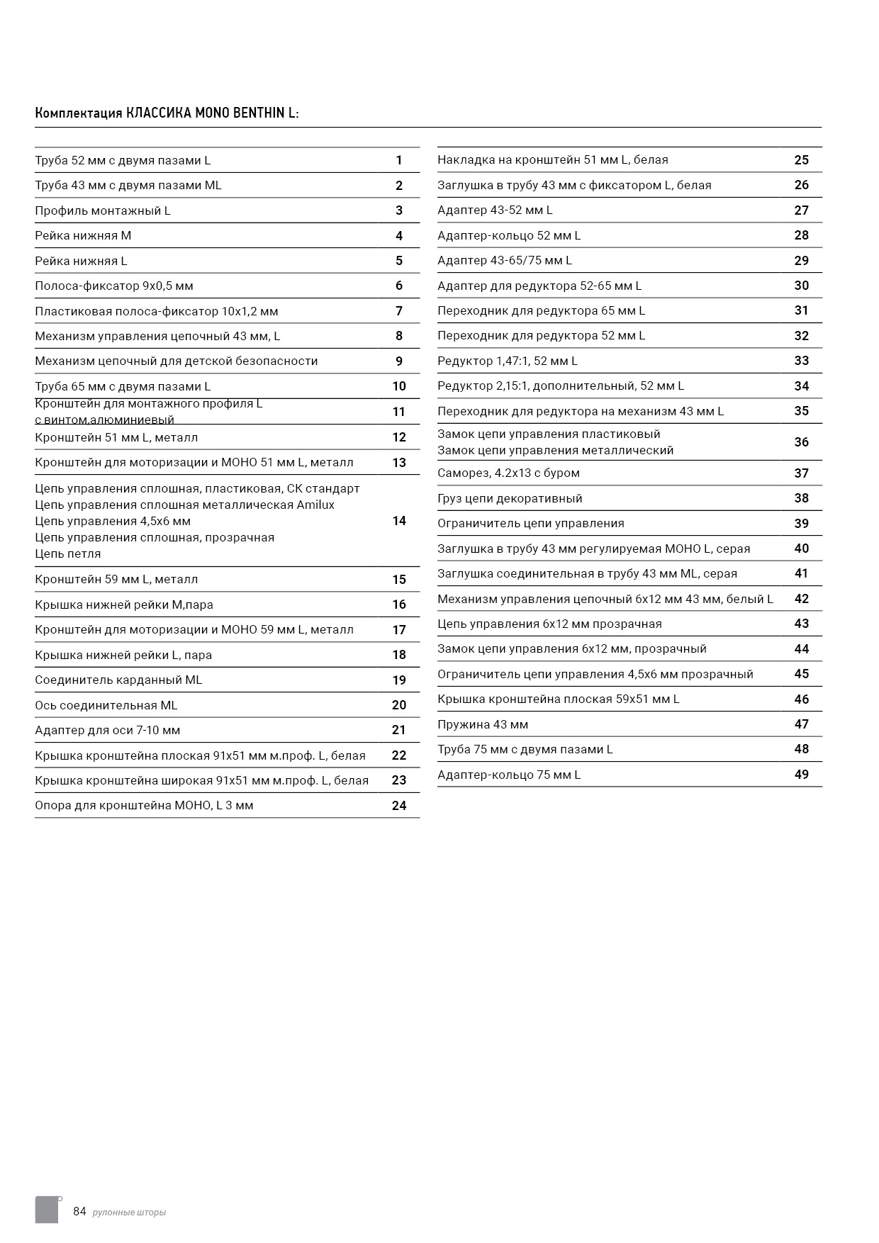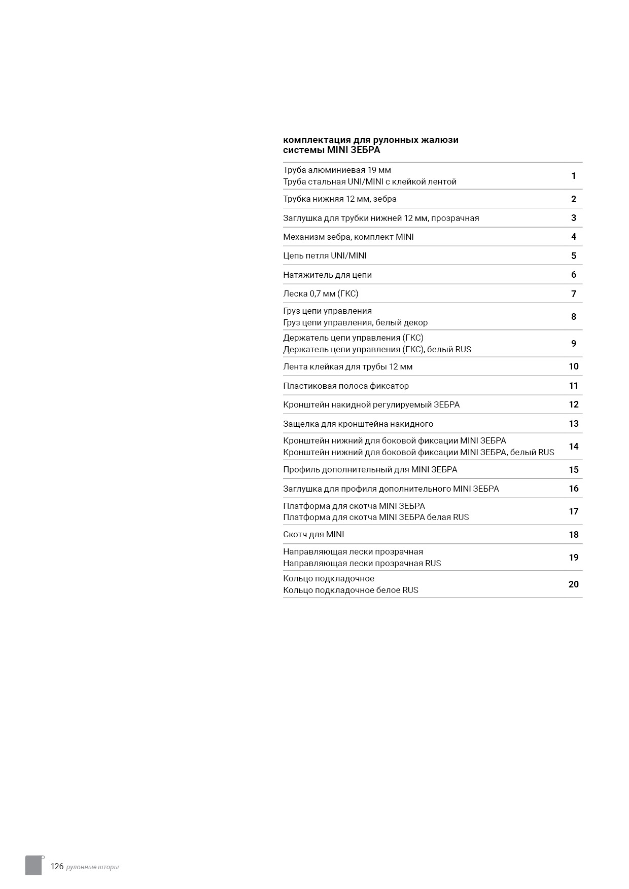Технический каталог комплектации